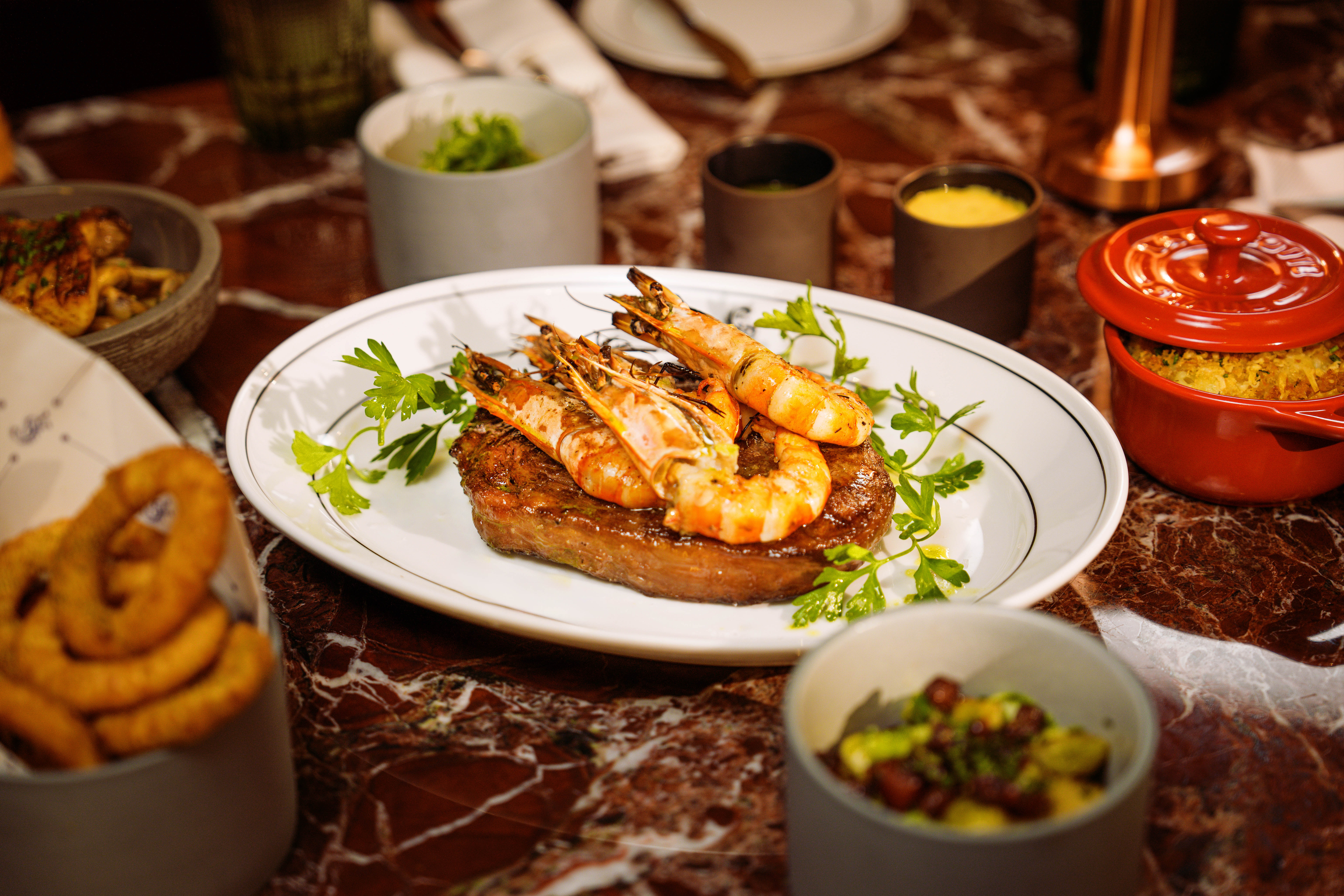Australian Wagyu Delmonico MB7 with Grilled Prawns